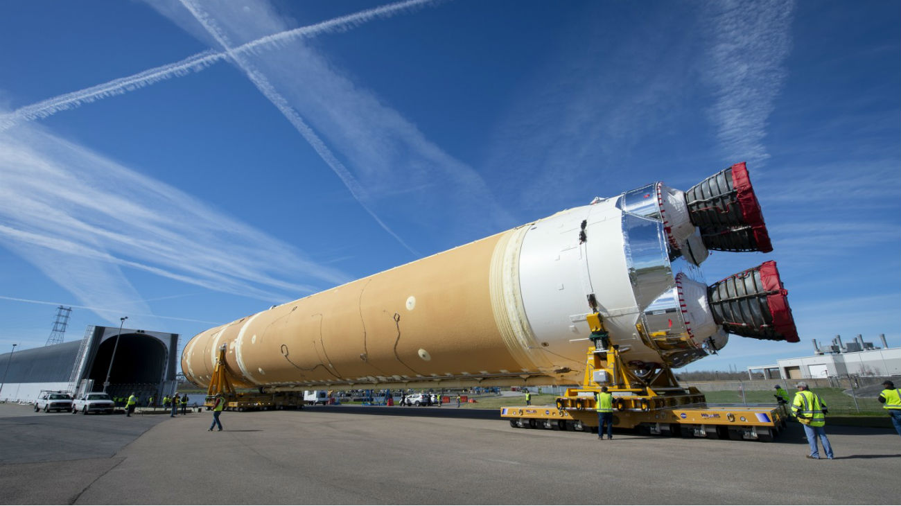 De NASA heeft deze week de centrale raket van het reusachtige Space Launch System onthuld.