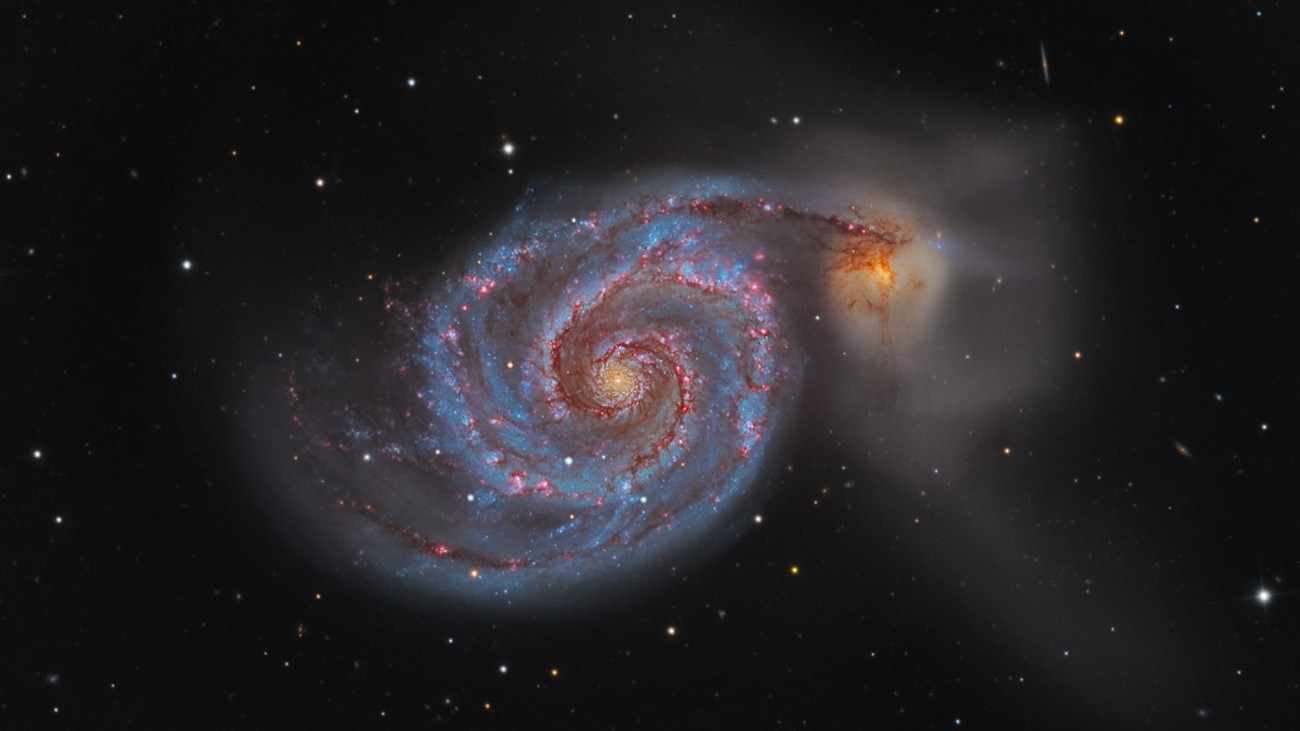 Het Draaikolkstelsel, Messier 51 geheten, is een mengelmoes van sterren. In het gele centrum van dit spiraalstelsel – gekenmerkt door armen rondom een bolvormige, centrale verdikking – bevinden zich de oude sterren. De heldere jonkies bevinden zich in de spiraalarmen. Die armen fungeren eigenlijk als een soort sterrenkraamkamer, er worden geregeld nieuwe geboren. Maar sterftegevallen zijn ook waargenomen. In de afgelopen 17 jaar spotten astronomen drie supernova’s: in 1994, 2005 en 2011.