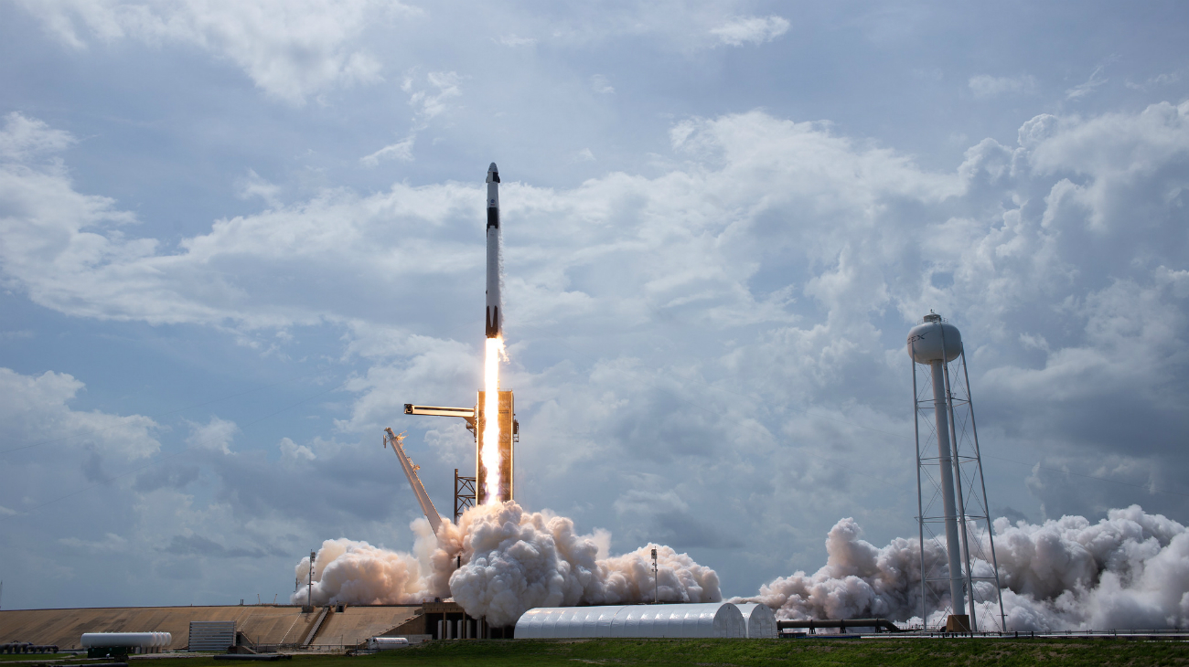 Het was feest in het Amerikaanse Cape Canaveral. Daar werd gisteravond de Falcon 9, SpaceX’ tweetrapsraket, met de Crew Dragon-capsule de ruimte in gelanceerd, op weg naar het Internationale ruimtestation (ISS). Een dubbele primeur: niet alleen is het de eerste keer in bijna negen jaar dat er een bemand ruimtevaartuig op een Amerikaanse stuwraket vanaf Amerikaanse grond de ruimte in gaat, het is ook voor het eerst dat het uitgevoerd wordt door een commercieel bedrijf.
