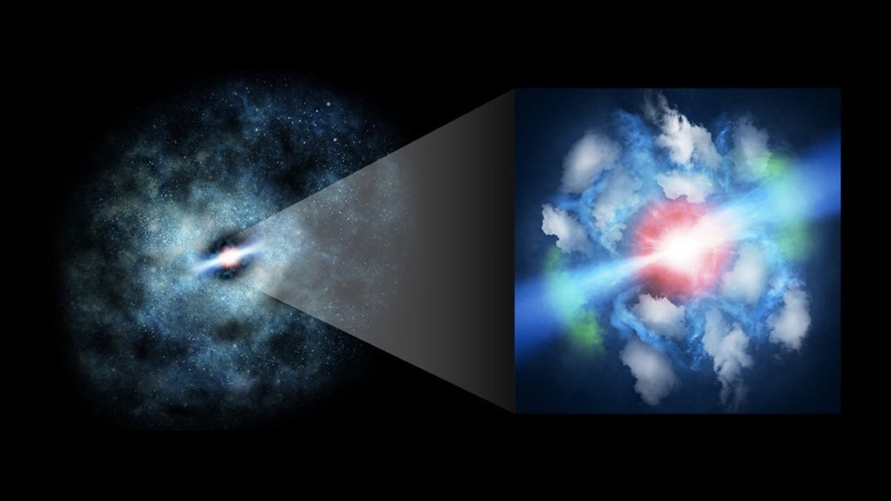 Sterrenkundigen van de Universiteit van Tokyo zijn op een bijzonder tafereel gestuit. Terwijl een superzwaar zwart gat de materie om zich heen opslurpt, zendt het plasmastralen uit. Deze zogeheten jets verstoren de gaswolken in zijn eigen sterrenstelsel MG J0414 + 0534. Dit fenomeen is al lastig genoeg om vast te leggen, maar in dit geval bevindt het stelsel zich ook nog eens op een afstand van maar liefst 11 miljard lichtjaar. En toch slaagde het team erin om er een plaat van te maken.