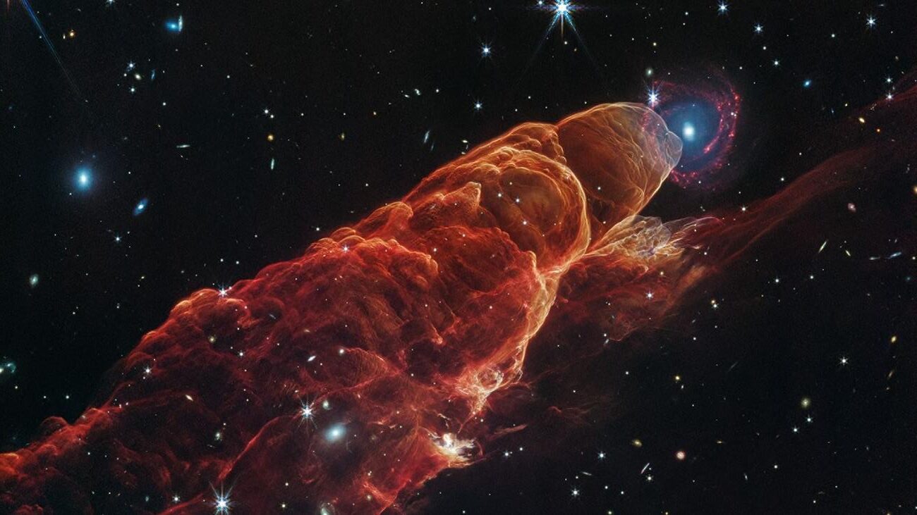 Vanwege zijn spiraalvorm kreeg Herbig-Haro 49/50 (HH 49/50) al snel na zijn ontdekking – in 2006 door NASA’s Spitzer Space Telescope – een toffe bijnaam: de kosmische tornado. Een foto die de telescoop van het object schoot, liet bovenaan de ‘tornado’ een wazig bolletje zien. Lange tijd was de identiteit van dit bolletje onzeker.
