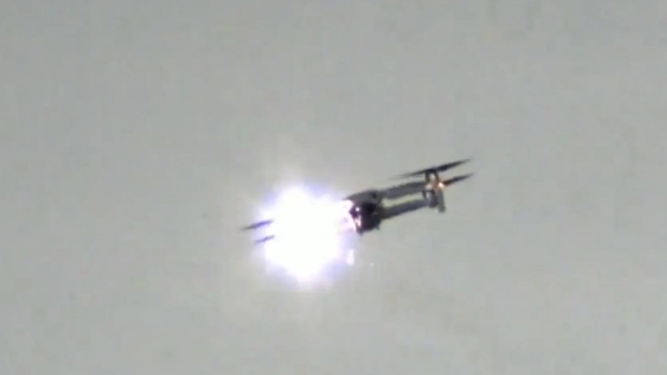 Flanagan: “Je drukt op een knop om de drone te volgen en de computer neemt het over, waarna je op een andere knop drukt om de trekker over te halen, net als bij een videogame. Met je wijsvinger kun je snel bepalen waar je op wilt richten; bijvoorbeeld de videocamera van de drone, de romp, of een van de propellers. Het duurt maar een paar seconden om de camera uit te schakelen en twee of drie seconden om de rotor uit te schakelen.”
