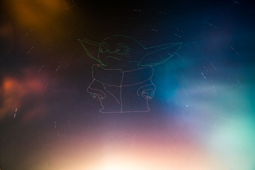Het ‘lichtportret’ van Baby Yoda is gemaakt door Russell Klimas, een Amerikaanse kunstenaar uit Colorado Springs. Eerder maakte hij al lichtkunst van andere bekende verschijningen, zoals Iron Man, Pikachu en het symbool van de ‘Relieken van de Dood’ uit de Harry Potter-boekenserie.