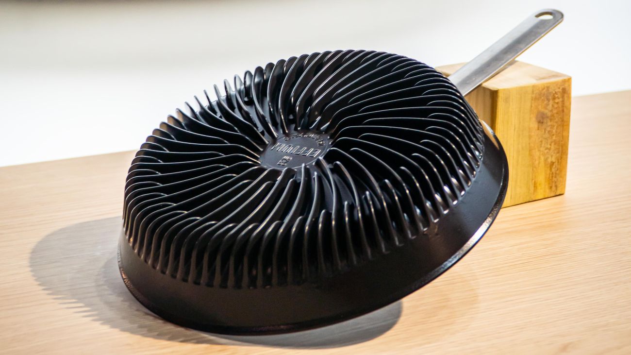 Hij raakte hierdoor geïnspireerd en ontwikkelde een pan met hittevinnen aan de onderzijde die het oppervlakte flink vergroten. “De vinnen zijn ook gebogen zodat de hete gassen een langere afstand over de bodem van de pan afleggen en dus meer tijd hebben om energie over te dragen”, vertelt hij aan KIJK. “De pan kan daardoor twee keer meer warmte absorberen.”