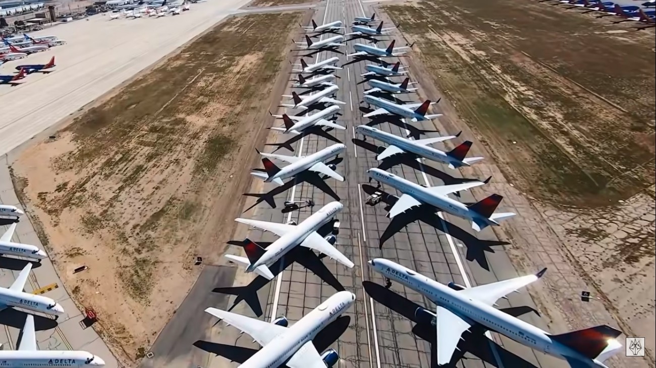 Vandaar dat veel luchtvaartmaatschappijen hun vliegtuigen hier hebben ‘gestald’. Nadat piloot Keith toestemming heeft gekregen van de luchtverkeersleiding laat hij zijn toestel zakken en vliegt laag over de honderden vliegtuigen van onder andere Southwest Airlines, Delta Airlines en FedEx.