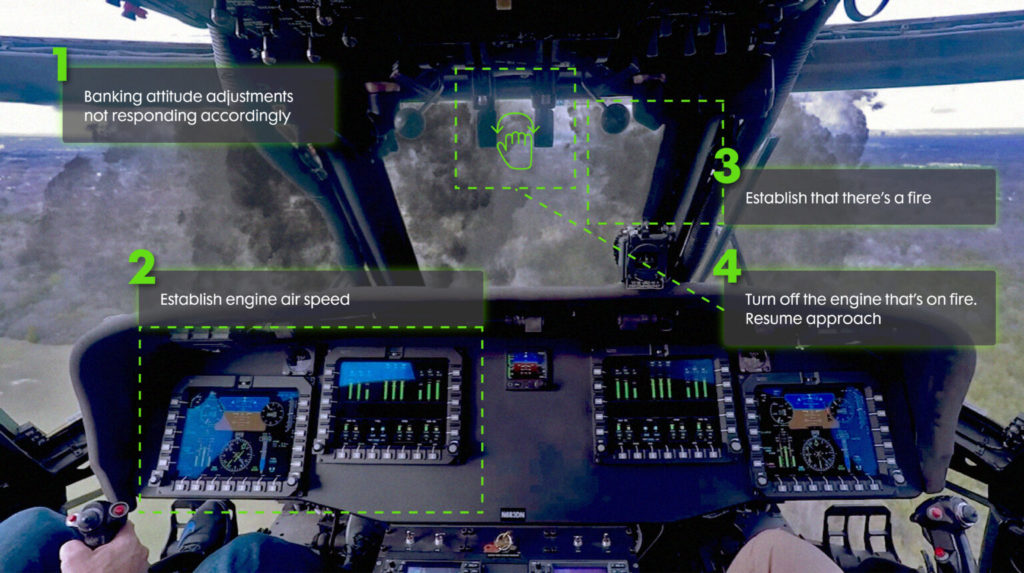 Militaire vliegers zijn uiteraard getraind voor dat soort situaties, maar de uitdagingen zijn groot. Vooral helikoptervliegers zitten vaak dichtbij allerlei obstakels, vaak ‘s nachts, en komen veel dichter bij luchtafweergeschut. En als het mis gaat, gaan er in de cockpit zoveel toeters en bellen af dat ze door de bomen het bos niet meer zien. Belangrijke alarmen worden daardoor genegeerd, en soms zelfs helemaal niet gehoord.
