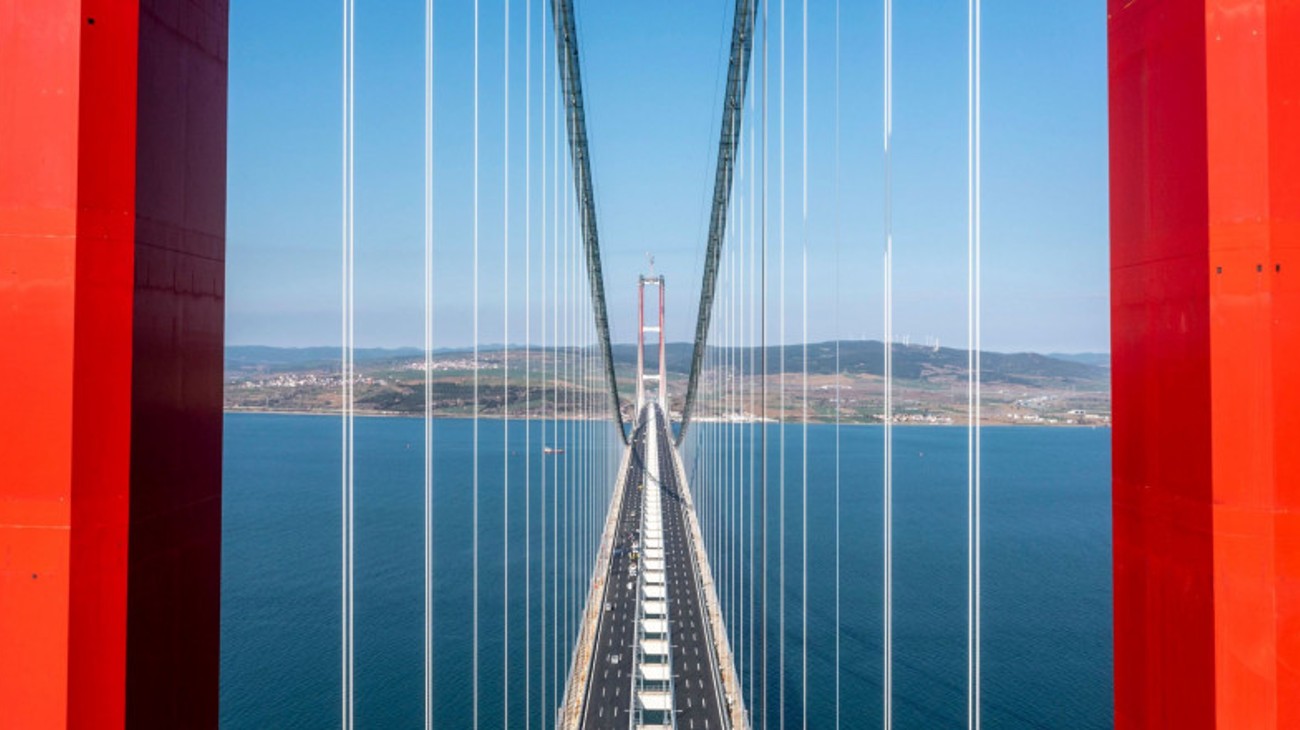 Hij is een jaar eerder klaar dan gepland: de 1915 Çanakkale-hangbrug. Met een overspanning van 2023 meter is dat de langste van zijn soort. Maar daarmee houden de records niet op. Zo zijn de pylonen met een lengte van 318 meter nog hoger dan de Eiffeltoren. Verder was er voor de bouw van de brug, waarvan de naam verwijst naar de Slag om Gallipoli in de Eerste Wereldoorlog, 277 duizend kuub beton en 177 duizend ton staal nodig.
