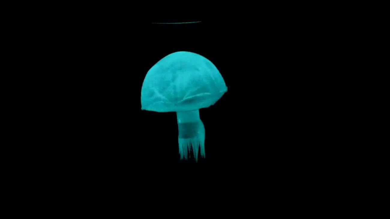 De flowbatterij van de robotkwal is verbonden met een trekdraad die de vorm van zijn zwemklok – zoals de ‘hoed’ van een kwal ook wel wordt genoemd – verandert. Wanneer deze trekdraad de zwemklok bol maakt, beweegt de robot naar voren. Wanneer de hoed zich vervolgens ‘ontspant’, zinkt de kwal weer wat naar beneden. Om daarna verder omhoog te worden gestuwd als de zwemklok weer als een paraplu uitklapt. Enzovoort, enzovoort.