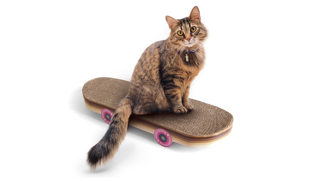 Wat iedereen irritant vindt? Katten die aan meubelstukken knagen en krabben. Nou ja, eigenlijk katten überhaupt wel. Maar katten die aan meubelstukken knagen en krabben zijn nog extra irritant. Daarom presenteert Suck UK nu het Cat Scratch Skateboard: een skateboard van corrugated card, speciaal gemaakt zodat je poezenbeest er graag aan zal knagen en krabben. Nog altijd irritant, hoor, maar toch net wat minder.