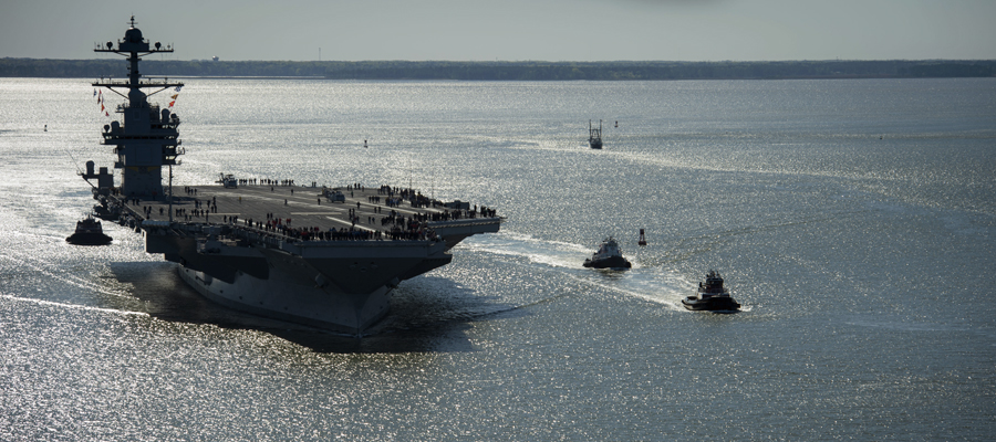 De bouw van de Ford begon in 2009 en na diverse vertragingen en kostenverhogingen – het kost nu 13,7 miljard dollar – zal het schip naar verwachting dit jaar nog in gebruik worden genomen. De laatste horde is een belangrijke: het testen van het schip en al haar systemen op volle zee. Daarvoor verliet het schip op 8 april de werf van Newport News in Virginia om voor het eerst op eigen kracht te varen. Marinepersoneel en bouwers van het schip zijn nu op de Atlantische Oceaan bezig het schip rigoureus te testen en een alomvattend programma van extreme manoeuvres en nagebootste oorlogssituaties te doorlopen.