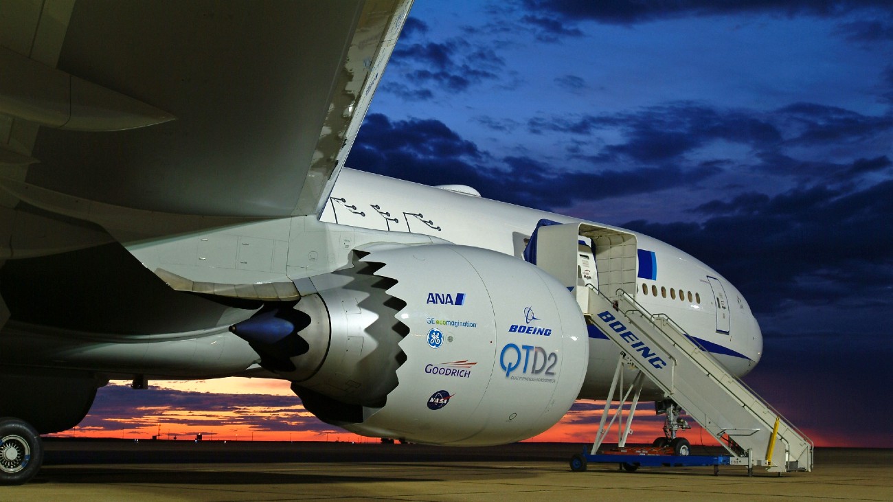 Maar het is ook vanwege geld. Een toestel dat van zichzelf al stiller is, heeft minder geluidsisolerende maatregelen nodig om aan de normen te voldoen. Dat betekent een lichter toestel, en een lichter toestel verbruikt minder brandstof. Boeing riep daar in 2005 het QTD2-testprogramma (Quiet Technology Demonstrator Two) voor in het leven, een voortzetting van, je raadt het al, QTD1. Voor de tweede sessie schoven de NASA, motoronderdelenbouwer Goodrich, General Electric en Nippon Airlines aan in een poging om zoveel mogelijk decibellen weg te schaven. Gekeken werd naar acht maatregelen, waaronder een naadloze beplating van de luchtinlaat, een soort afdekplaat tussen de wielen van het landingsgestel, en het toepassen van die kartelranden, chevrons genoemd.
