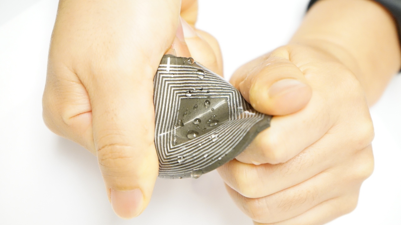 Meestal wordt het bewegen van die magneten veroorzaakt door een hard materiaal, zoals een metaallegering. Maar het team, onder leiding van Yun Chen, besloot het over een andere boeg te gooien. De keuze viel op een zacht silicium-matrix, een elastisch materiaal. Je kunt dit spul een beetje vergelijken met een soort klei. Nu ontstaat het magneto-elastische effect: iets of iemand die tegen de ‘klei’ aan duwt zet de magneten in beweging en er wordt elektriciteit opgewekt.