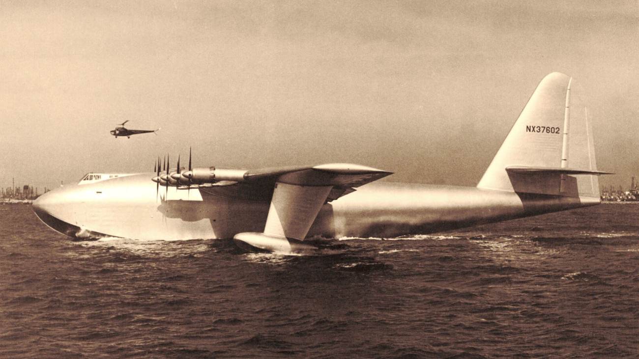 Op 2 november 1947 maakt het houten vrachtvliegtuig, ontworpen door Howard Hughes, zijn eerste vlucht.